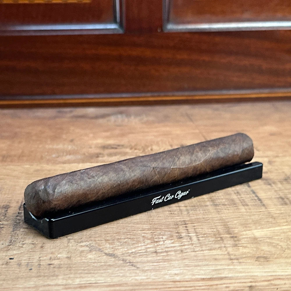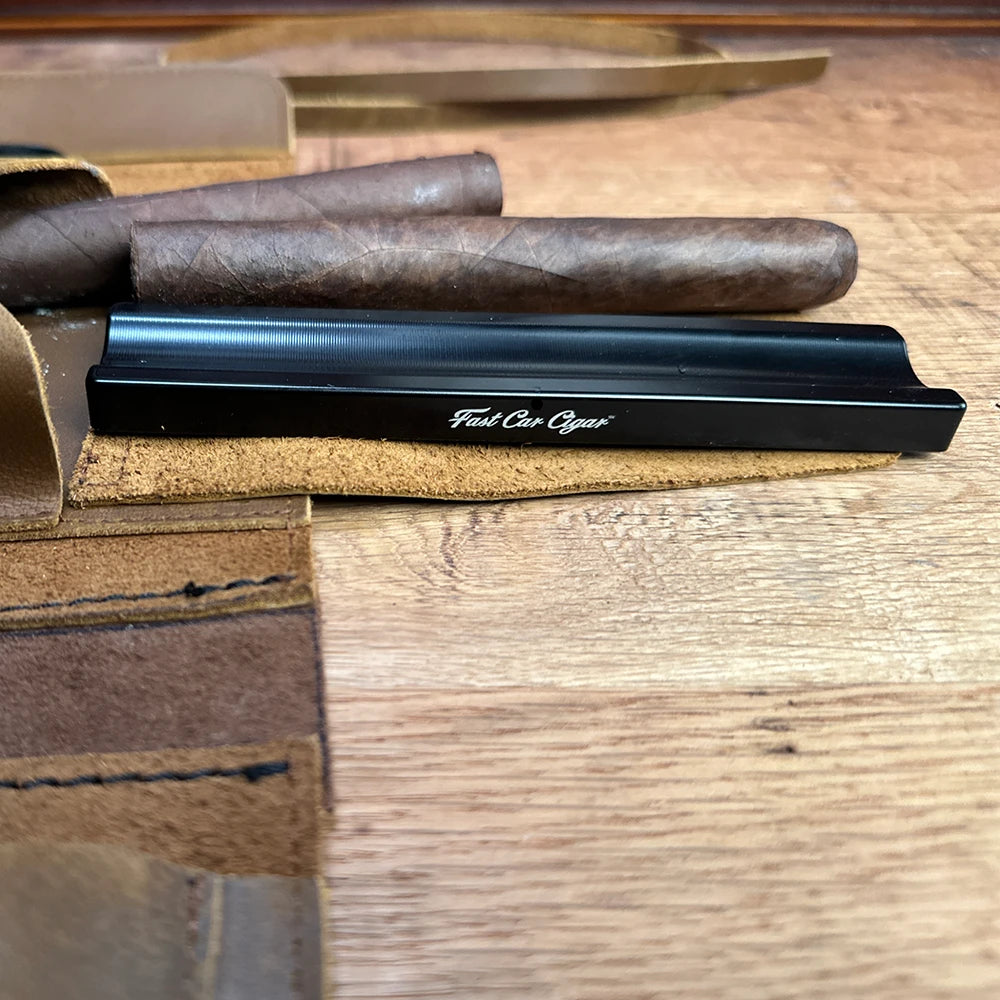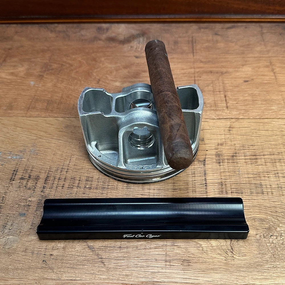 The Dragstrip embodies refined simplicity and purposeful design. Precision-machined from CNC aluminum, it is a compact yet substantial travel companion—designed to slip effortlessly into your case while elevating any moment of pause. An authentic race piston is integrated as a functional ashtray or a resting place for your essentials—lighter, cutter, or accessories. Thoughtfully crafted to cradle your cigar as you consider what matters most, The Dragstrip is not designed for the fast pass. It is built for those who appreciate intention, craftsmanship, and endurance. Built for the long haul.